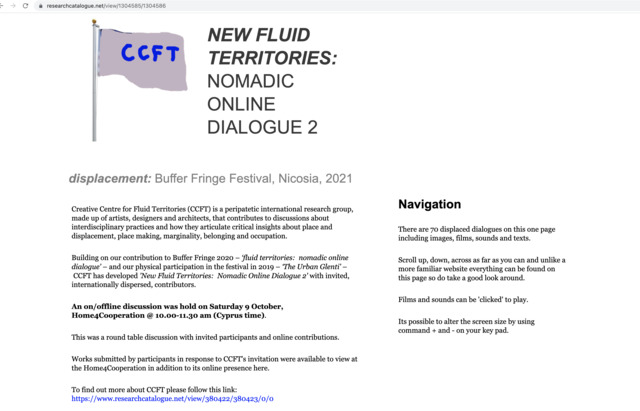 | Event Title: | CCFT Nomadic Online Dialogue 2 – New Fluid Territories - Displacement – Cyprus Buffer Fringe VIII, 2021, |