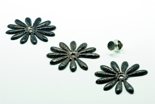 Bottomley, Stephen (2022) 'Love- Love me not', 2022, Brooches, Steel and enamel; and 'Loss-T', Faience (Egyptian paste), mixed media, exhibited at Gioiello Devozione / Devotional Jewellery, 25th November 2022 to 16th February 2023, Italy. [Artefact]