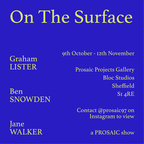 | Abstract: | On the Surface Gallery Text This micro-exhibition features paintings by Graham Lister, Ben Snowden and Jane Walker in which both the substrate and the materiality of paint are fundamental to how the work evolves and is subsequently resolved. For Snowden and Walker, their expressive mark-making requires a support sturdy enough to withstand energetic and vigorous explorations; while Lister creates a surface smooth enough to allow the paint to glide across, yet capable of holding and recording its trail. Like a good maths exam, all three works show their workings-out, as the artists demonstrate their understanding of how their chosen materials behave. It is curated by Sean Williams. Bloc Studios, 198 Arundel Street, Sheffield S1 4RE Exhibition dates: 9 October - 12 November 2022 _____ An exhibition orchestrated by Sean Williams, an established Sheffield-based curator, On the Surface was an additional show, following the success of his previous exhibition, Think Of Me With Kindness (RADAR 8692), of which I was selected to be part. Williams selected the painting Bits of Sellotape Left on the Wall to showcase dialogues between works which focus on varying uses, and a love of, pigment on substrate. In On the Surface, Bits of Sellotape Left on the Wall acted as a meditative and slow counterpoint to the other works on display – each of which drew viewers toward the painted surface. The exhibition, identified with a photograph of Bits of Sellotape Left on the Wall, was featured in the October Newsletter of Contemporary British Painting. -------- After its inclusion in Think Of Me With Kindness, the use of the work in a different context allowed me to better draw into focus ideas of the impact/ smooth movement of pigment on substrate. It opened up thinking related to the duration of looking and really ‘seeing’ a painting. What makes a viewer ‘sit’ with a work? What invites contemplation within the field of abstract painting? The work could be grasped at a glance, but it, alongside it’s partners in this exhibition offer a level of detail, or fluency in their making which draws viewers in. It is this that has been an important aspect of this group exhibition. |