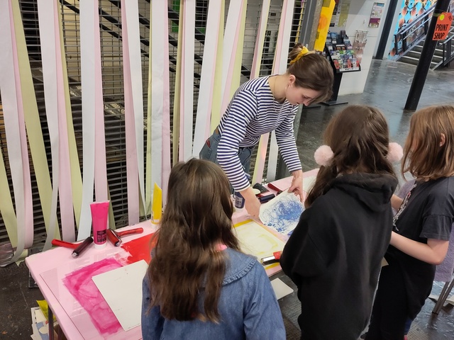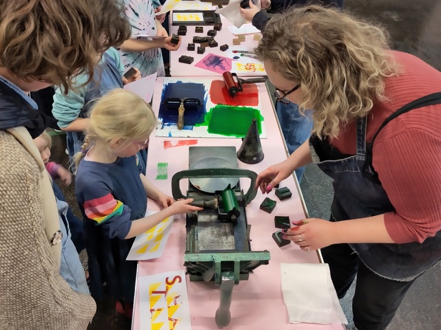 | Abstract: | Printshop! is a hands-on celebration of printing and the creative potential of print and typography for public engagement developed by Edwin Pickstone and Tramway, Glasgow. All Printshop activities are run by professional artists and designers. The workshops are free to join with materials provided and no booking required. Printshop! 2023 hosted a specially commissioned installation by Letterpress Printer Ruth Kirkby on the theme of 'Printing and Shops' alongside workshops hosted by: Erin Bradley Scott: Sign-Writing, Mono-print and Stencil Lettering This fourth iteration continues the work described in the practice based research portfolio Printshop! Exploring new possibilities for a dialogic and collaborative space of making through Letterpress printing, artistic collaboration, workshops and public engagement. https://radar.gsa.ac.uk/7540/ |