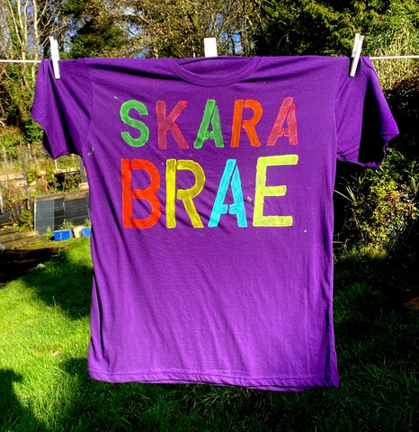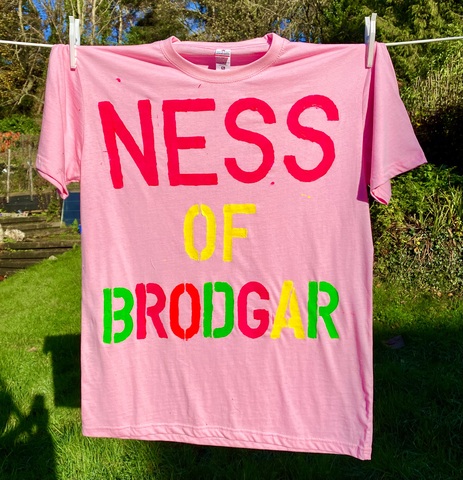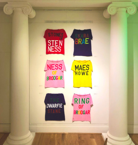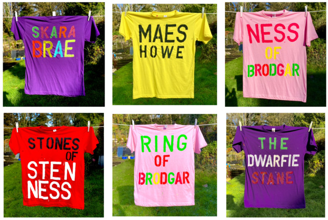 Sinclair, Ross (2022) Real Life Orcadian Neolithic Souvenir Tour T-Shirt Painting No. 1 : SKARA BRAE Real Life Orcadian Neolithic Souvenir Tour T-Shirt Painting No. 2 : NESS OF BRODGAR Real Life Orcadian Neolithic Souvenir Tour T-Shirt Painting No. 3 : MAES HOWE Real Life Orcadian Neolithic Souvenir Tour T-Shirt Painting No. 4 : (STANDING) STONES OF STENNESS Real Life Orcadian Neolithic Souvenir Tour T-Shirt Painting No. 5 : RING OF BRODGAR Real Life Orcadian Neolithic Souvenir Tour T-Shirt Painting No. 6 : THE DWARFIE STANE (HOY). [Artefact]