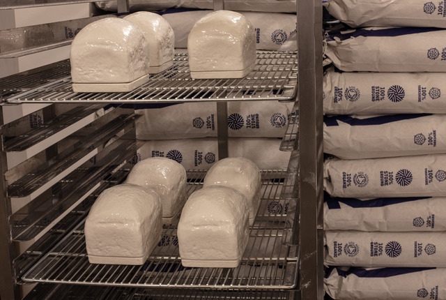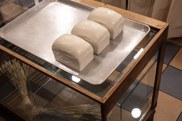 Bread ‘n Butter butterdish is cast from a loaf of bread, made in collaboration with bakers two.eight.seven. Made in Stoke-on-Trent, it evokes traditional creamware, clear glaze on slip-cast earthenware clay, and stamped with cobalt blue.
