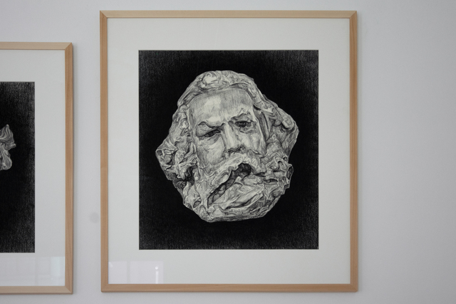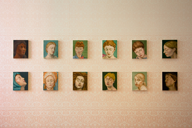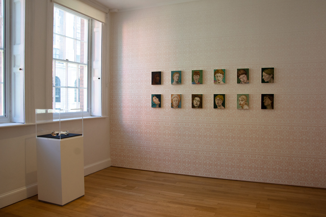 | Additional Information: | I have sought out two series of sculptural works by these sculptors to make paintings and drawings from. In my first selection these women are depicting women (often a friend or peer) with their eyes downcast or closed, looking away. I enjoy the ambiguity implicit in both the signalling of an empowered absorption or self-containment alongside a reading of social conformity and female modesty. I have also become interested in sculptural portraiture where the sitter is in a friendship or relationship with the artist, not only can this bring to light obscure[d] histories, it also allows me to speculate broadly on the ‘intersubjective’ relation that spirals around ‘ocular power’ within portraiture. The 12 paintings, 20 x 25 cm on gesso boards are placed on hand printed wallpaper, a patterned abstraction that explores the compelling nature of symmetry and references the decorative excesses of the art nouveau of the period. On another wall, a second series of drawings from sculptures by the same women will be placed, but this time of men (often teachers or lovers). Most of these portraits only exist as a photographic document - by painting and drawing them I attempt to exhume them, rescuing the forgotten legacy of women sculptors. Further, a larger drawing of Sarah Bernhardt, with her face nearly erased, from a maquette by another of these sculptors the American artist Bessie Potter Vonnoh (1872 –1955) is present on another wall and a plinth, between them, holds four small hands in different materials originating from a 3D scan of a sculpture 'After Rodin' from the Ashmolean collection that may or may not have been modelled by one of the women in the exhibition. |