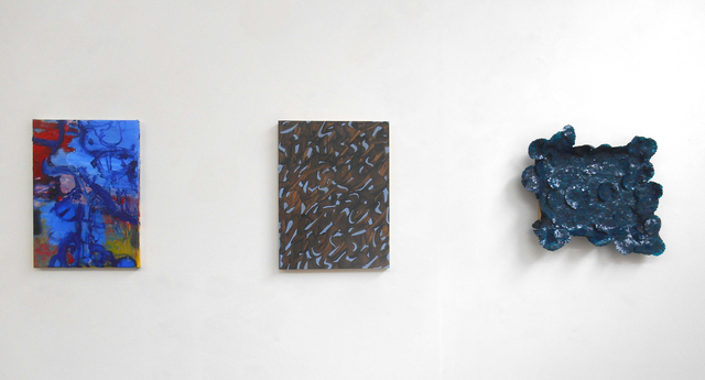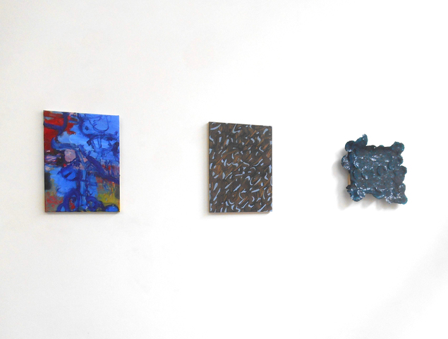 | Abstract: | Gallery Text This exhibition takes a look at three styles of Abstraction. (I) Edwin Aitken's emotive, subjective response to the natural world. A woodland walk is the catalyst for an ultimately non-literal interpretation of the landscape. The build-up of an array of marks creates a complex surface and a pictorial space in constant flux. (II) Graham Lister uses the activity of painting as a way of thinking about contemporary physical experiences. His work encompasses gradual abstraction processes, investigating visual codes and surface textures through repetitive mark-making and a delicious combination of gesture and careful filling in. (III) Kate Whateley's work is both Painting and Sculpture, or neither Painting nor Sculpture. It is an intriguing ambivalence. She meticulously constructs works that only bear resemblance to something fabricated by machine, yet with just enough handmadeness to create a unique, human experience for the viewer. It is curated by Sean Williams. Prosaic Projects Gallery, Bloc Studios, 198 Arundel Street, Sheffield S1 4RE Exhibition dates: 1 - 31 May 2023 ____ This exhibition was conceived by Sean Williams, an established artist and curator I have worked with many times in the past. Three artists were each invited to exhibit one work within this exhibition – with the view to draw attention to the ways that abstraction in painting remains a powerful, multi-faceted and relevant term. By isolating single works, in very close proximity to one another, Williams looked to showcase a complex snapshot of what abstract painting has the potential to ‘do’, not just ‘what it is’. These 3 works were featured in a previous exhibition in Sheffield, in which there had been a much larger number of artists. This exhibition felt like a distillation of that exhibition. Specifically, the abstract (A Different Sort of Stress) work takes cursive writing and looks to blend potential legibility with fragmented glimpses of colour – obscuring and obfuscating the text. Through doing this, an oscillation between that which a viewer feels should be able to be read, and an ensemble of clearly abstracted, aesthetic marks plays out. This work is part of ongoing visual research relating to surface materialities, textures and markmaking within contemporary painting. |