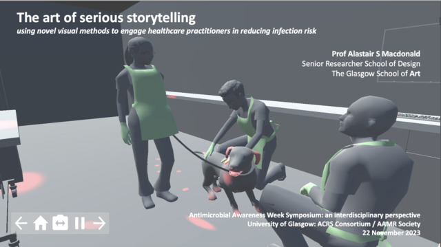 Macdonald, Alastair (2023) The art of serious storytelling: using novel visual methods to engage healthcare practitioners in reducing infection risk. In: Antimicrobial Awareness Week Symposium: an interdisciplinary perspective, 22 November 2023, University of Glasgow, UK.