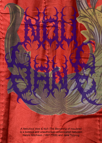 Adapted from a poem written by Naomi Mitchison as a child, found in the archives of the National Library of Scotland, A Nebulous Void and Null describes the creation of a fictional alien/human hybrid - nouJane - who first appeared in my 2018 film nou. The work occupies eight pages in the publication Queereal Secretions, 2023.