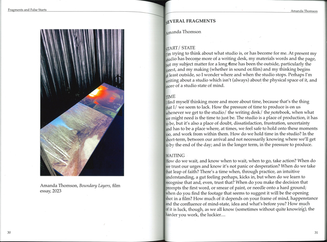Essay reflecting on studio use and practice, written for the publication accompanying Dr Graham Lister's Creative Scotland funded project and exhibition, Fragments and False Starts.