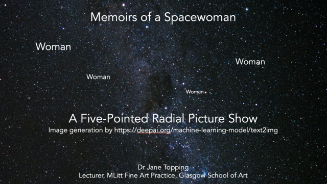Topping, Jane (2023) Memoirs of a Spacewoman Woman Woman Woman Woman: A Five-Pointed Radial Picture Show. In: Feminist Histories of the Future, 10 May 2023, Henry Moore Institue, Leeds.