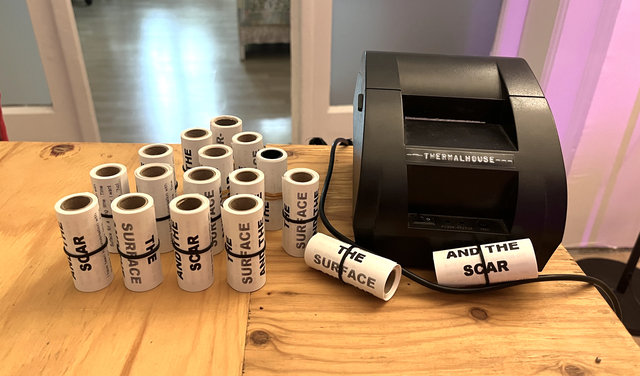 | Abstract: | An artist publication created especially for the medium of thermal printing, starring two protagonists, Surface and Scar, who reckon with the meaning they struggle to co/create. These little scrolls are produced using an inkless printing technology commonly used in printing receipts: the chemically treated paper changes to black wherever heat is administered. Inspired by Thermal House Publishing while on residency at Footnote Centre for Image and Text in Belgrade, this publication became a meditation on writing, the heat death of the universe, and the battle between Concreteness and Potential. Published by Thermal House Publishing in July 2023 at Footnote Centre for Image and Text, Belgrade, Serbia. |