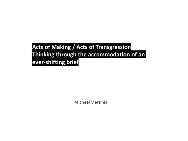 Mersinis, Michael (2024) Acts of Making / Acts of Transgression. In: Delightful Fun, 3 December 2024 -13 December 2024, The Glasgow School of Art, Grace & Clark Fyfe Gallery and Bourdon Lecture Theatre.
