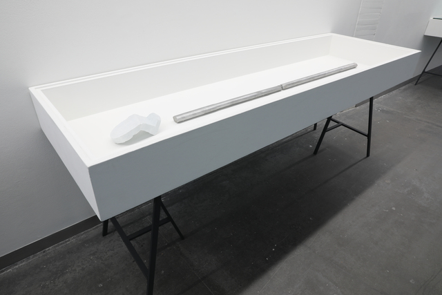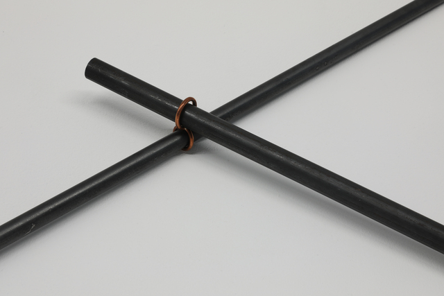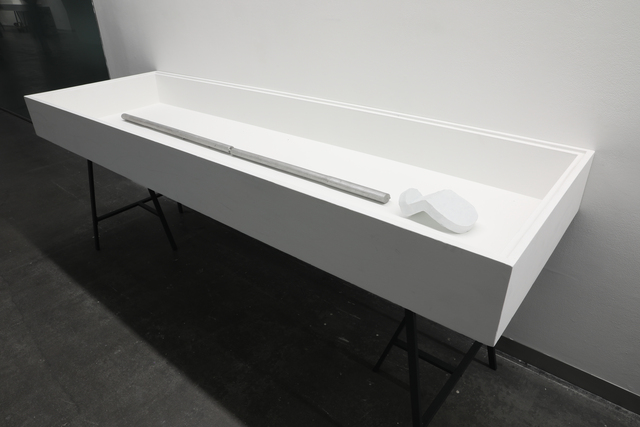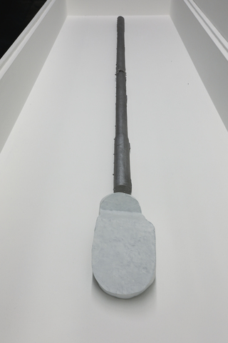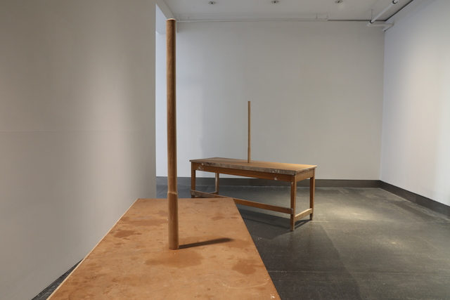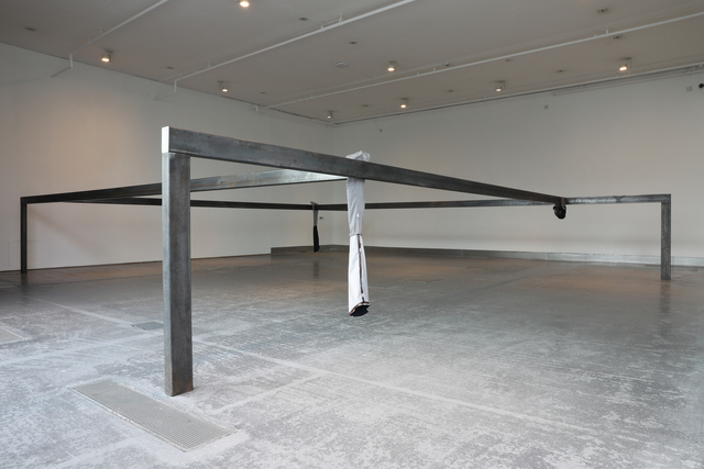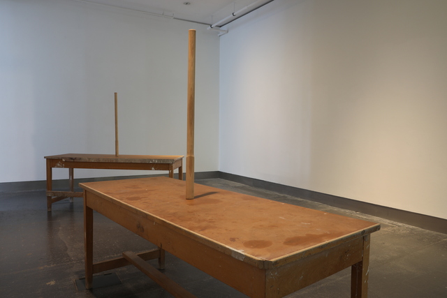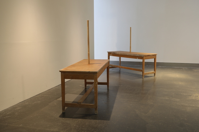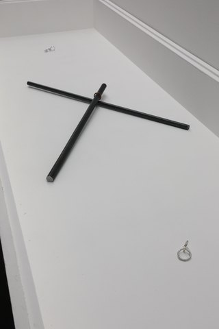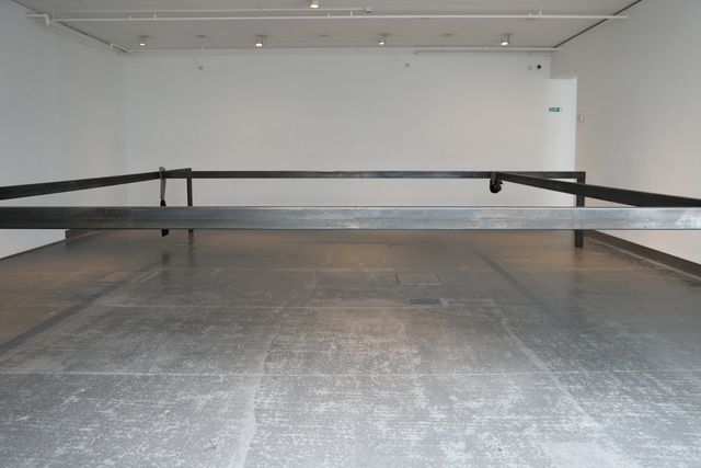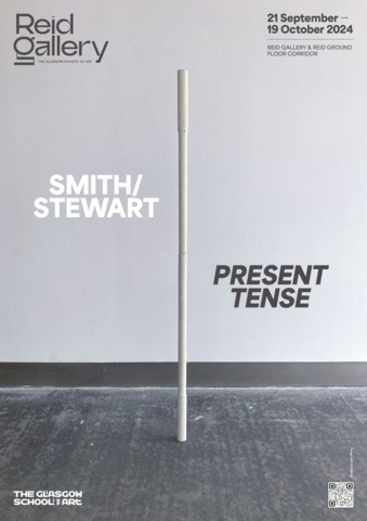 SMITH/STEWART PRESENT TENSE 21 September - 19 October 2024 Reid Gallery and Reid Ground Floor Corridor "PRESENT TENSE is a new exhibition by artists and long-time collaborators SMITH/STEWART. Since the mid 1990’s Stephanie Smith and Eddie Stewart have been making work together as SMITH/STEWART. They work and live in Glasgow and both teach in The School of Fine Art. Their work explores interdependence and the relationships we have with one another. They make sculptural installations, with a primary emphasis on the body and the implication of the viewer. Their practice develops out of collaborative dialogue and material investigation, to construct situations in which the viewer becomes central as an active constituent. Pared back to what’s essential, they are interested in the co-existence of connection and separation, power and powerlessness. Of things shifting in and out of sync with one another, coming together and moving apart. They are showing a new body of work in the Reid Gallery and alongside, in the Reid corridor, they present material in relation to their process of making, never usually shown. SMITH/STEWART’s work has been exhibited nationally and internationally and they have participated in key survey shows on both video and language. They have had solo exhibitions in NGBK Berlin, Kunstmuseum Luzern, Portikus Frankfurt am Main, Chisenhale Gallery London, Inverleith House Edinburgh. Their work is in public collections including Arts Council England, The Scottish National Gallery of Modern Art and Tate." (Gallery Handout) Accompanying Events: - Public gallery tour, led by the artists - Video Screening, introduced by Laura Haynes (GSA) with audience Q+A The research and development of the body of new sculptural installation work shown was, in part, supported by a summer residency period in the Reid Gallery. This was also informed by two critical conversations with researchers Ross Birrell (GSA Research) & Viviana Checchia (VOID, Derry). We worked closely with Jenny Brownrigg & John Farrell (GSA Exhibitions). We collaborated with Anna Gordon (Head of S&J, GSA) to make a double silver ring '&'. This was bespoke to us, made for holding hands and worn by the artists for the duration of the exhibition opening, as an unannounced performance. Fabrication of the installation works was supported by GSA TSD, particularly Giulia Lazzaro & Nick Carlin and external sculptural fabricators, Sculpture & Design (Glasgow) Ltd. Works shown: Three new sculptural installations, for the three adjoining spaces of the Reid Gallery and unannounced public performance (Reid Gallery) - 'Present tense' (2024) Two work tables, two sledgehammer handles and motors - 'The weight of the world' (2024) Steel and fabric - 'Approach aslant' (2024) Steel beam and motor Sculptural work and printed material (6 x vitrines, Reid Ground Floor Corridor): - '&' (2024) Double silver ring for holding hands, made for SMITH/STEWART by Anna Gordon + Wire and copper prototypes - Cast aluminium sledgehammer handles and painted bronze ‘skulls’ - Inked sledgehammer handle cross section with woodcut on paper - Structure maquette, steel and magnets - Aluminium template, plywood sections Woodcut on paper - 'Cleave' (2024) Divided SMITH/STEWART solo publications |